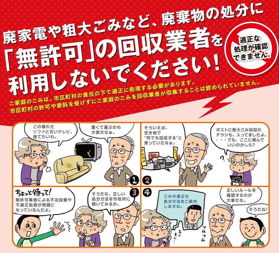無許可で回収を行う業者も存在します。後から高額請求をされるなど、トラブルになるケースもあるため注意が必要です。